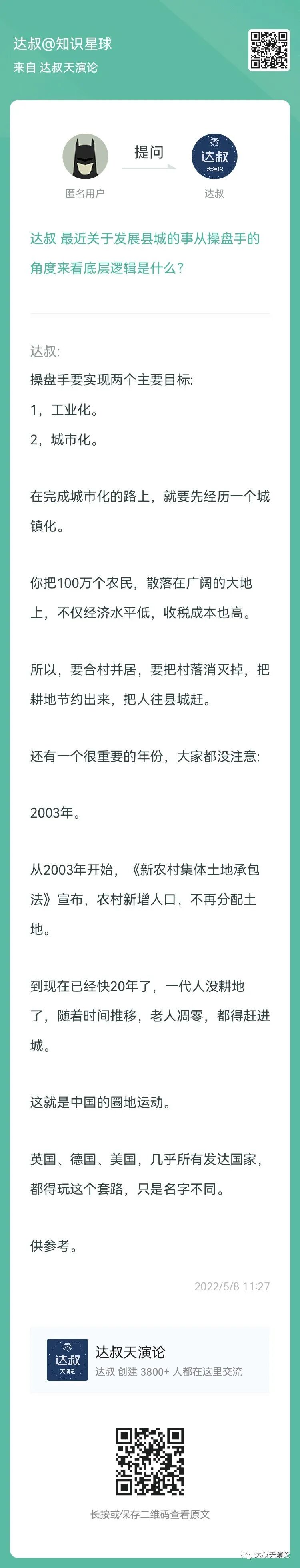 同样的问题,在知识星球里,还有一个人,问了一个问题,是关于县域的。