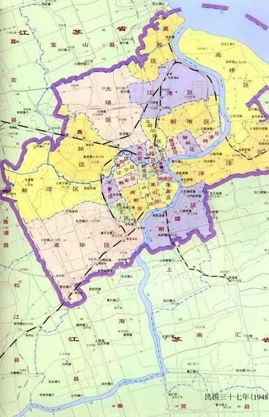 把江苏省原来手里的嘉定县、宝山县、川沙县、南汇县、奉贤县、金山县、松江县、青浦县、崇明县。