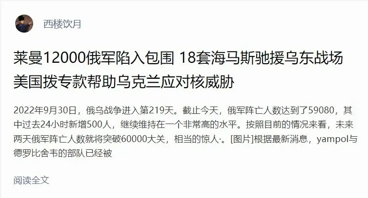 我真诚地希望,我们在莱曼的被包围的部队(一般情况下,他们的数量和人数应该都很少)能够被迅速解围并成功撤离。否则,一场本来相对微不足道的作战战术失败将变成对我军巨大的士气打击,反之对敌军而言,则变成乌克兰武装部队巨大的士气激励。