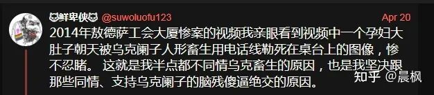 俄方说法:乌克兰纳粹屠杀俄族人。 在俄罗斯网站上我找所谓 敖萨德大屠杀的完整版。 其中最能煽动仇恨的就是所谓的“虐杀乌克兰母亲”照片。俄方声称敖德萨大楼中发现一名遇害孕妇,完整的证据链表明乌克兰纳粹残酷谋杀了这个孕妇。纳粹虐杀了乌克兰母亲,所以俄罗斯要帮助乌克兰消灭纳粹!这种捏造的说法被搬到俄罗斯电视反复播放。很多俄国人因此而仇恨乌克兰。然而这个所谓的铁证,我用20秒钟就找到了破绽: