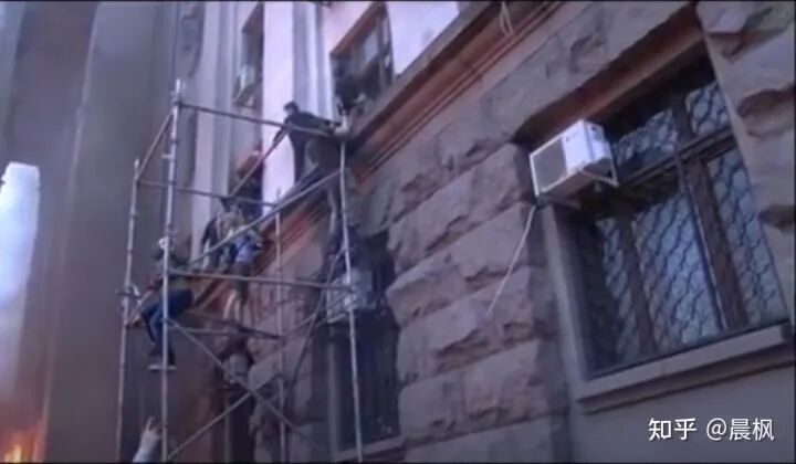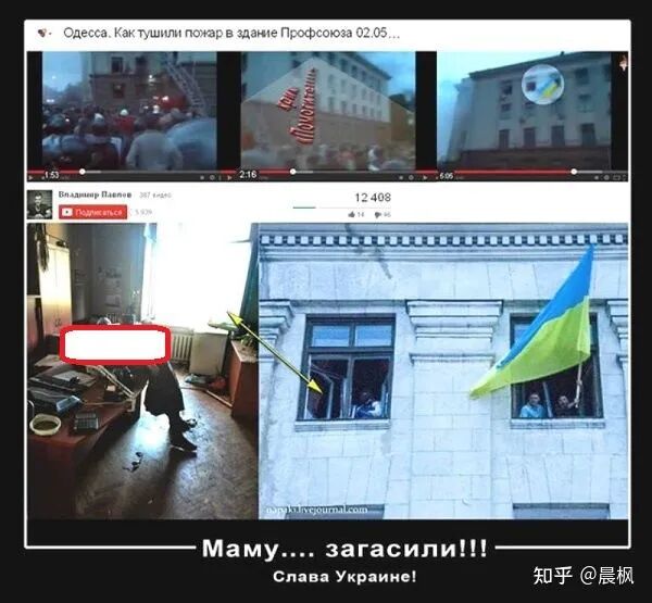 俄方信誓旦旦的还说: 大楼着火后,站在屋顶的都是纳粹,不是俄族,都是凶手!而火遇害孕妇的 房间里面,有个红色安全帽,这也是证据链中不容置疑的罪证!。 火灾发生后,大批乌族不顾危险,用各种办法帮助火灾被困的俄族逃脱,俄方报道不但掐头去尾,甚至倒打一耙: