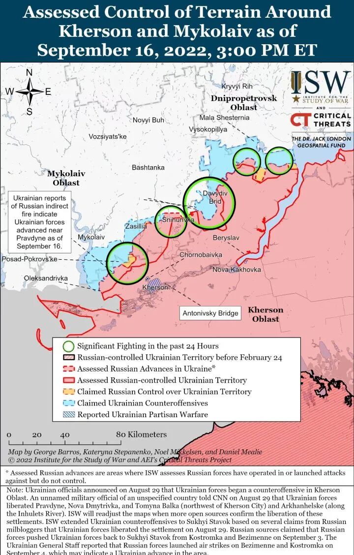 Ⅱ 赫尔松战况一览;进入八月下乃至九月初后,乌克兰武装力量向盘踞在国土上的发动大规模反击。在赫尔松方向的乌克兰军队从五个方向进行反击,他们取得了一千平方公里左右的战果,并且严重威胁了驻守赫尔松的俄军。乌军使用远程炮灰试图切断俄军的补给线,这种做法在赫尔松这个天然的“防御者坟墓”客观上给俄军的补给线造成了极大威胁,并且事实上加大了对方的补给成本和补给难度,迫使该方向的俄军降低了炮击频率乃至无法取得主动权。过去我们往往论证空天军和俄军炮兵的低能,或许俄军的补给能力也是如此,既体现在其作为战役一级补给单位的“补给旅”不仅在编制上可用的车辆不多甚至这些编制本身就是“纸上空谈”,而且其补给质量堪忧在全世界也是公认的“我们不知道拿到手的是什么”由于其信息化系统的滞后,前线的需求和补给在一定程度上是不匹配的,“他们给的是什么!”客观来看,短期内拿下赫尔松是不现实的,这个地区的俄军韧性比伊久姆哈尔科夫高多了,即使乌军对该方向上的俄军发动了几次大规模攻势都没有彻底打垮赫尔松的俄军。从长远的角度来看,个人认为俄军撤出赫尔松是一个可以接受(acceptable)且必然的结果,如果过多的有生力量在赫尔松被乌军消灭,那么对于本来就缺乏机动力量的俄军来说将可能造成南线的总崩溃。尽管一些乌克兰方面的信源宣称他们在和一些俄军的前线部队进行投降谈判事宜,但是就目前情况来看可能是出于宣传目的,如果情况属实这对于俄军来说无疑是灭顶之灾。对于乌军来说,其在赫尔松地区掌握了主动权,可以很好的掌握攻击节奏来实现其军事目标。乌军目前将大量的部队集结在一线,是否进行大规模地面攻势取决于总参的权衡。从目前的情况来看,乌军最近的攻击力度在逐渐加大,并且很多信息表示大量的俄军被俘、装备被遗弃甚至包括了集团军一级的电战车。