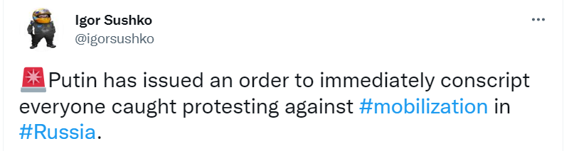 普京下令直接强行征召抗议人员入伍 (这一条有待证实)。