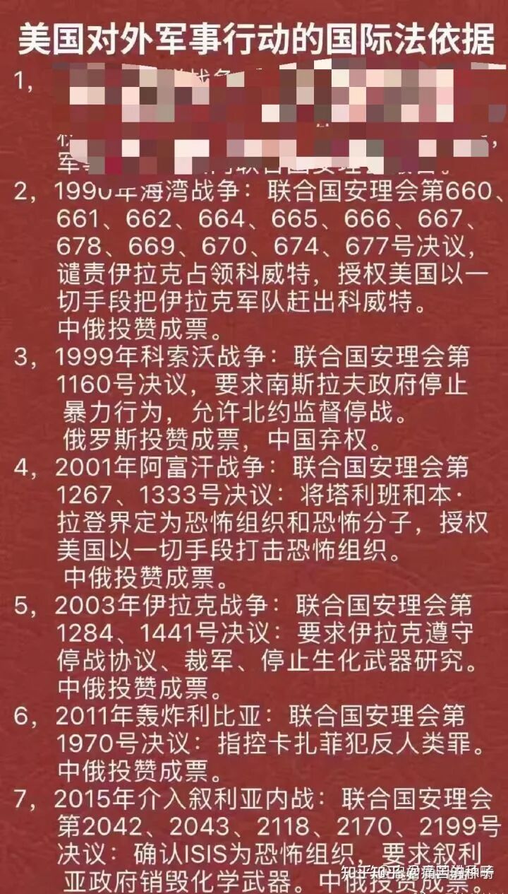 以上说的有点远。总之,老美在科索沃、伊拉克的两场战争,是为落实宪章和国际法,为伸张正义而发动的程序违法的战争,其具备实质正义,而且违反程序正义源自联合国内在矛盾,联合国决议与老美开战法理上具备一致性。