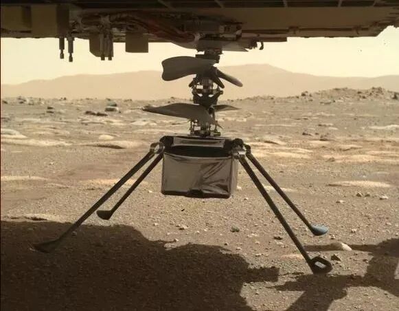 人类首台火星直升机“灵巧号”近日传回了它拍摄的首张火星表面彩色照片。