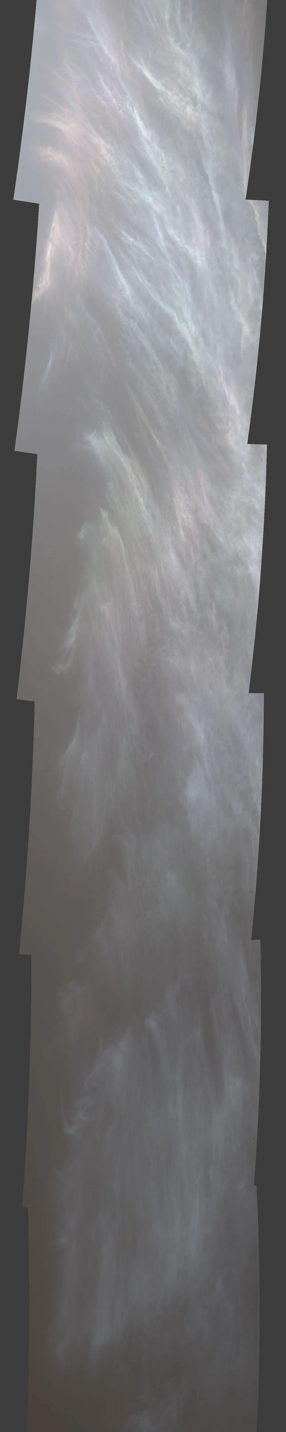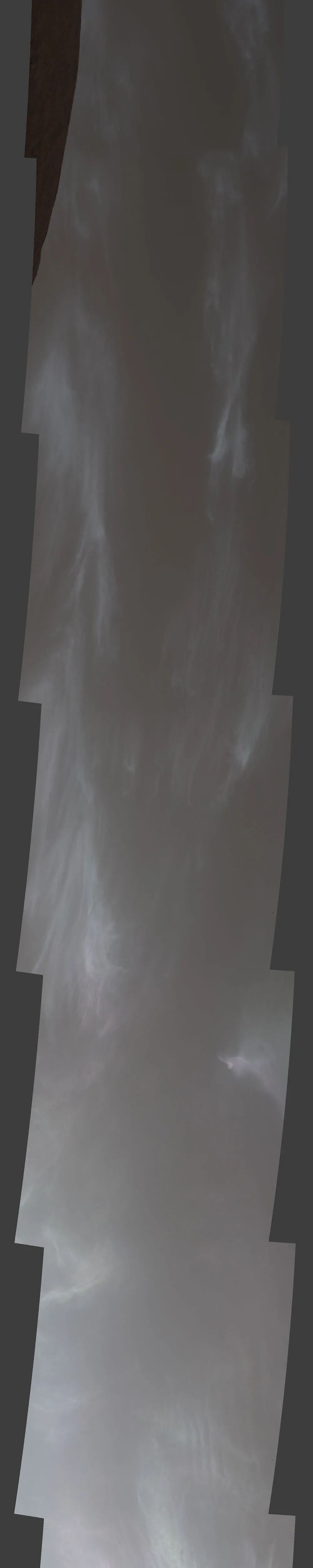 好奇号3月5日在火星上拍到的彩色夜光云。这张全景由23张小图拼合而成。由于微信限制大图,故而只能将其分成4部分。NASA / JPL-Caltech / MSSS