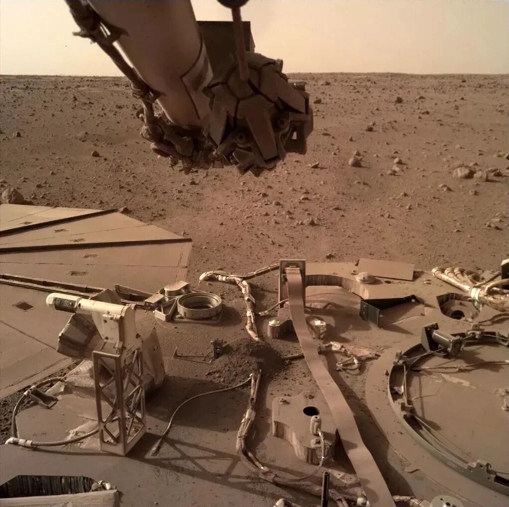 在2月13日拍摄的照片中,“洞察号”看起来真像是已经“半截子入土”了。NASA / JPL-Caltech