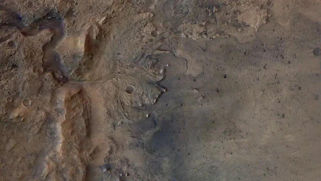 杰泽罗陨坑内的火山岩。NASA / JPL–Caltech