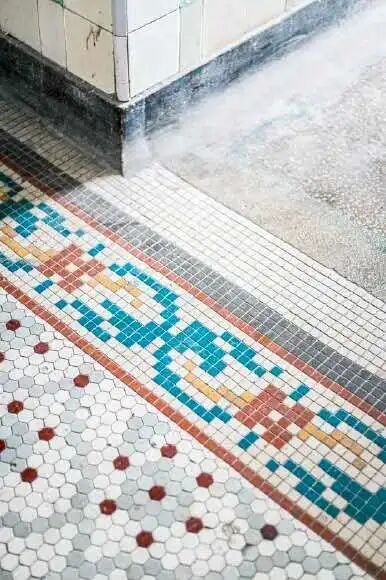 · 左:黑石公寓门口顶部,摄影©麦斯威尔;右:黑石公寓彩色地砖;图源网络