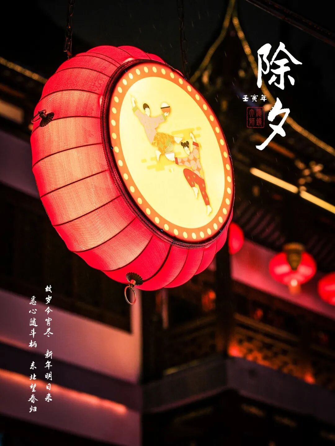 “过年走走九曲桥,一年烦恼都扫光!”今年九曲桥灯组是以二十四节气中春季的节气为主题——立春吃春卷、雨水走三桥、惊蛰赏桃花、春分酿春酒。