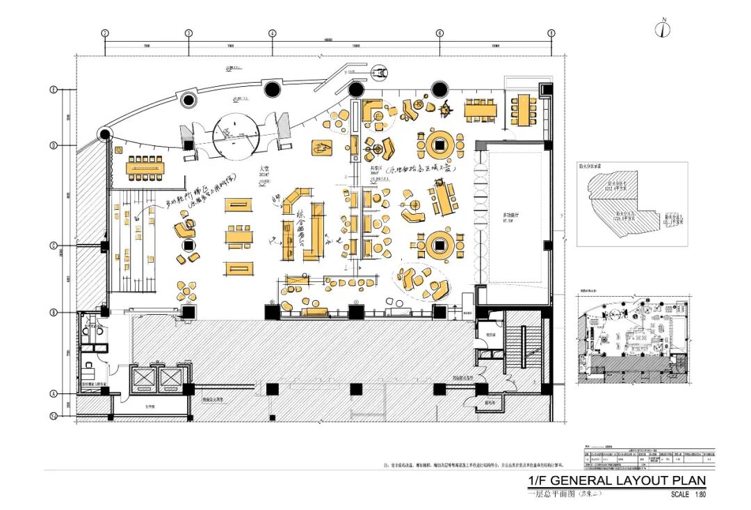 大堂的整体设计打破了老酒店的原有格局 / 上图由万达颐华酒店提供;下图为平面设计方案,由万达酒店设计研究院提供