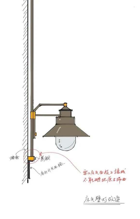 床头灯设计图及实景图 / 图片由万达酒店设计研究院提供