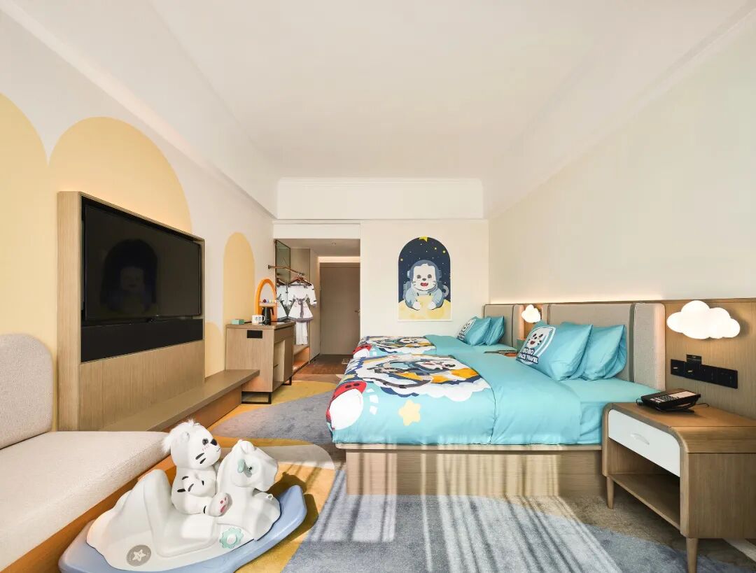 室内的色彩活泼的卡通涂鸦让儿童如同置身童话世界。客房内配备有儿童帐篷、儿童游戏桌椅等个性化设施,令亲子出行变得轻松而丰富。
