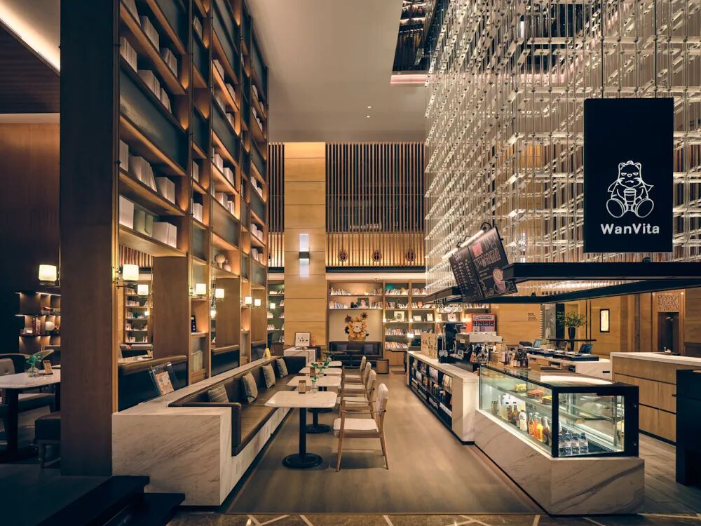 位于大堂中心的Wanvita-Cafe&Lounge采用“日咖夜酒”模式,24小时开放的复合空间里,白天提供甄选自庄园咖啡豆的现磨手冲精品咖啡,夜幕降临,这里则摇身一变,成为与三五好友小酌怡情的惬意场所。