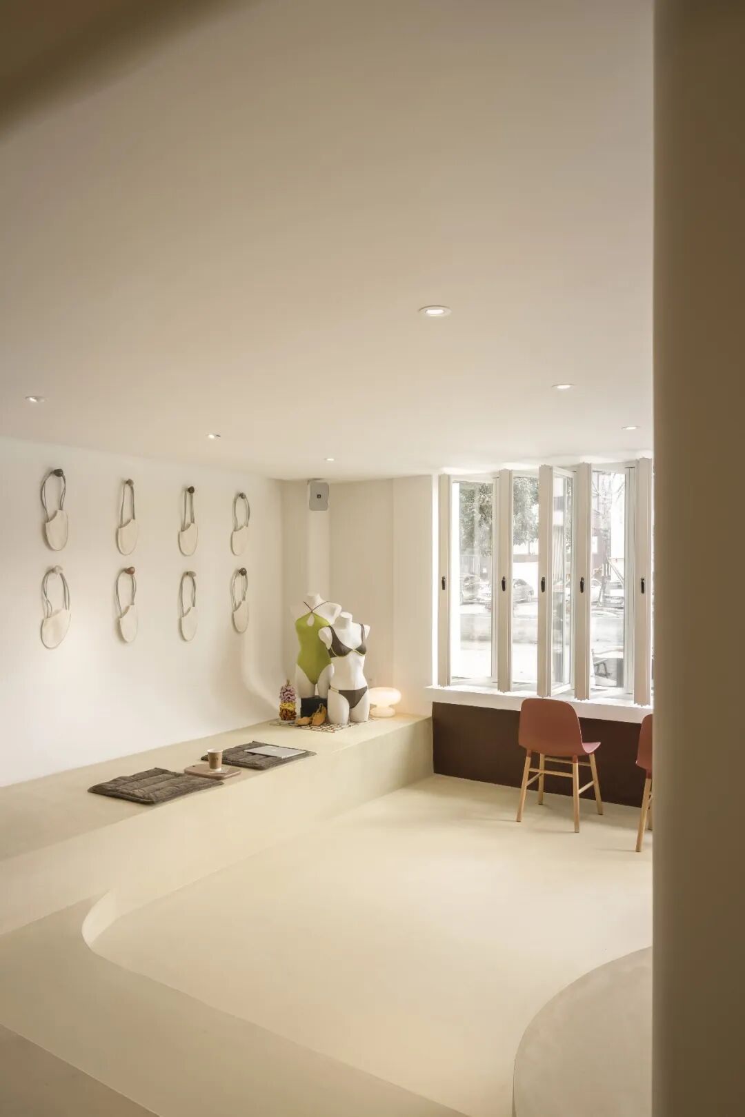 从咖啡、展览和试衣等多个空间功能上来看,VOIMENT提供了将内衣零售转变为公共空间的新样本。人们从这里买到的不仅仅是一件内衣,而是对自己的一份精准的认知(包括尺码和喜好)、一段与身体的私密对话,以及属于女性的生活艺术。