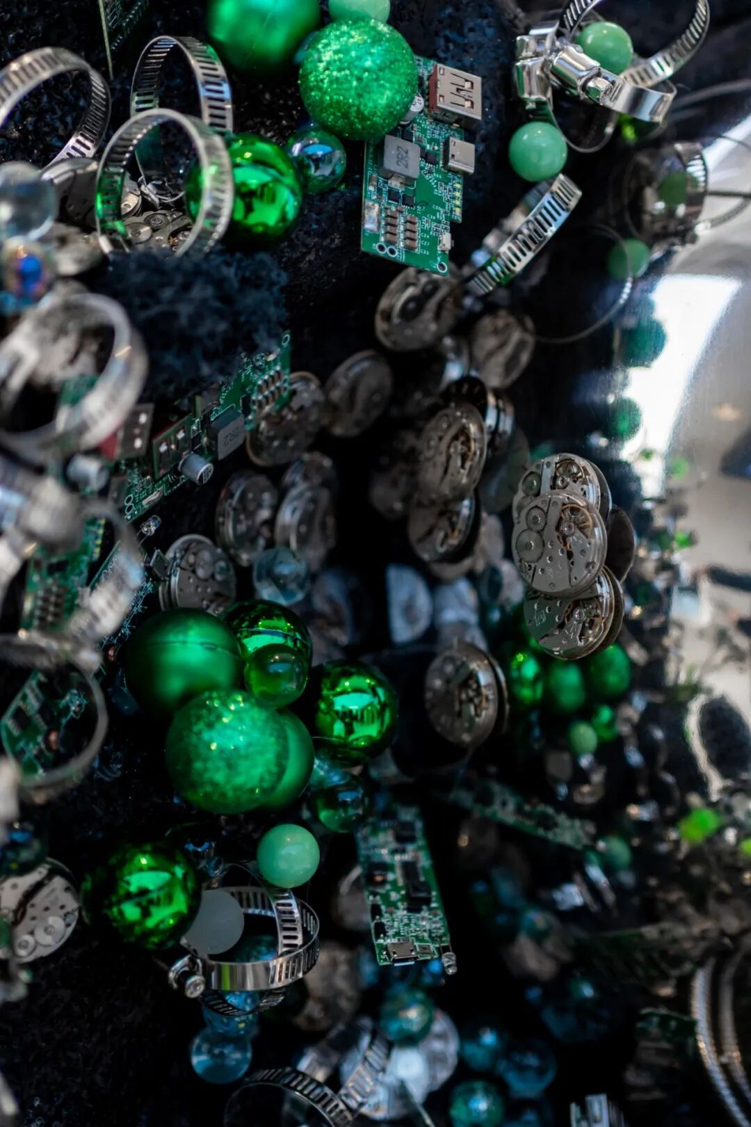 (SO)what的店内摆放了一个暗黑风格与未来感兼具的艺术装置——【电子荒原】1.0,艺术家将其解释为电子荒原野蛮生长,冲破坚硬的壁垒,在悬崖上生出绿植,在夹缝中长出水晶,如同“不被定义,不被局限”的女性。