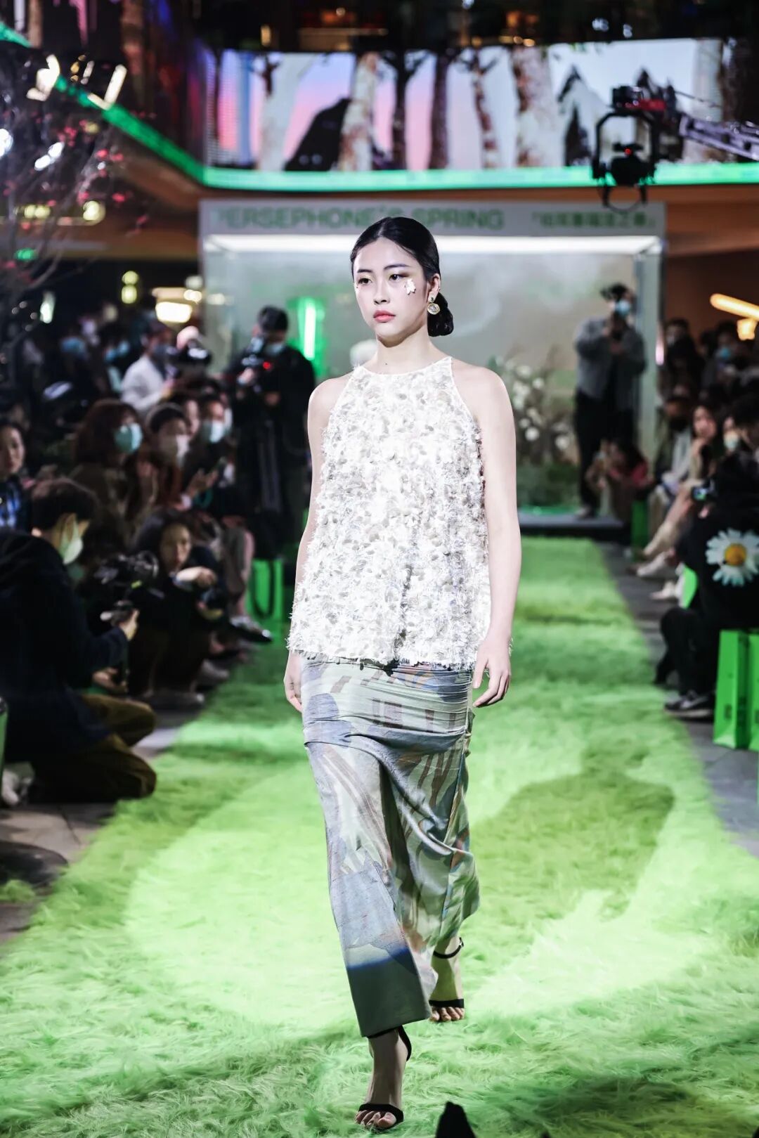 万籁俱寂中,灯光突然亮起,古希腊神话中的“春之女神”珀耳塞福涅降临大地,万物迎来一年一度的复苏之际,在合景·摩方(成都),一场以珀耳塞福涅之名的春季时尚大秀正在呈现。