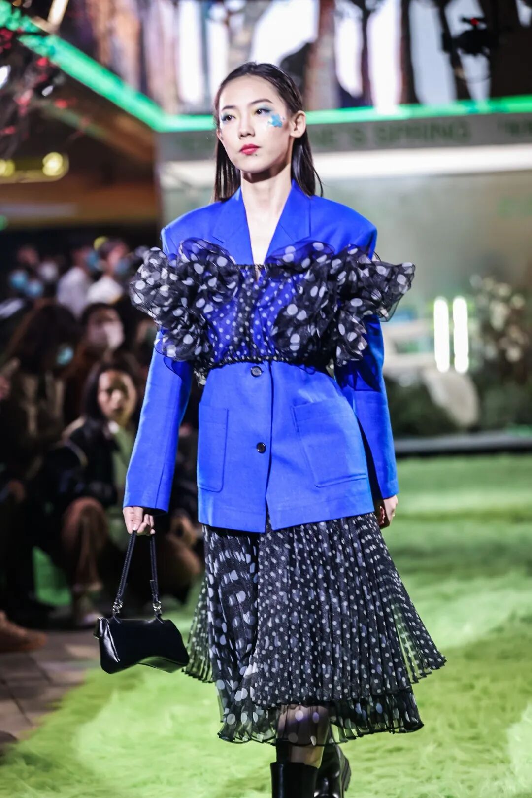近1个小时的大秀中,模特们共展示了超过60套春夏新款服饰,出自30余个设计师品牌,每一个品牌都从自身的视角出发,阐释他们心中的春季时尚。