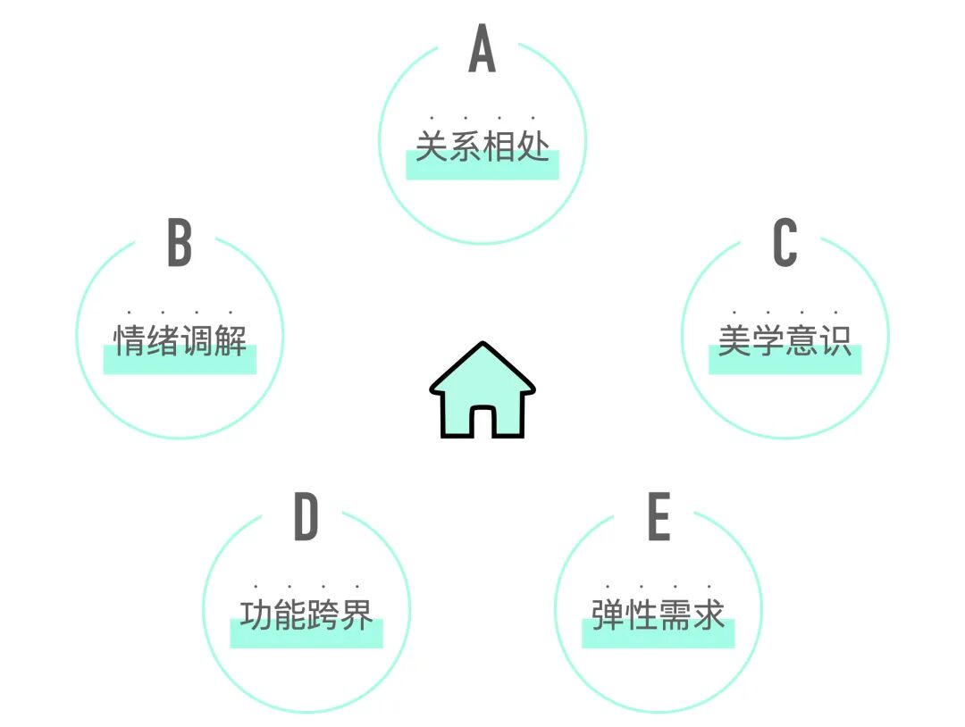 基于对空间变迁与当代生活现状的观察,我们以“家的幸福力”为命题,拆解出了五个维度:关系相处、情绪调解、美学意识、功能跨界、弹性需求。