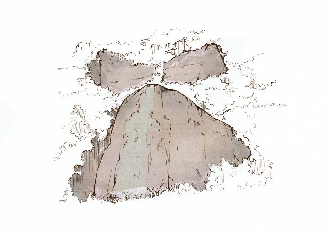从左到右,这些石头的名字分别是印把子石、青蛙石、马鞍石 / 图片由大城小村提供