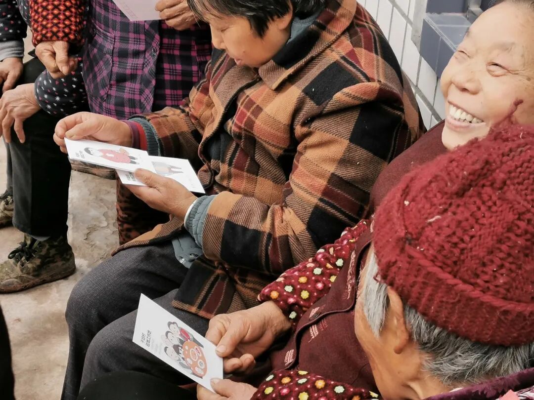 干埝村的村民正在欣赏干埝村驻地工作坊制作的人物卡片 / 图片由大城小村提供