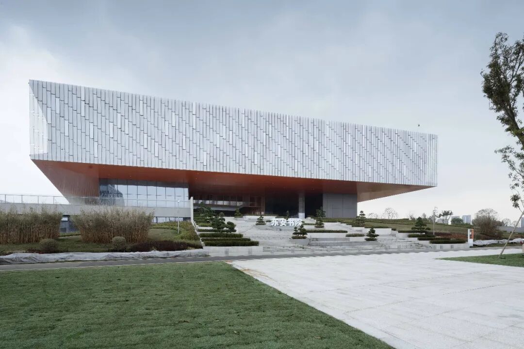 几座主要建筑的外立面都采用极具现代感和科技感的玻璃材料,设计简约而立体,12540块玻璃,每块大小、弧度等都不一,将建筑的几何学之美发挥到了极致,让人似乎置身某部科幻电影的场景中。