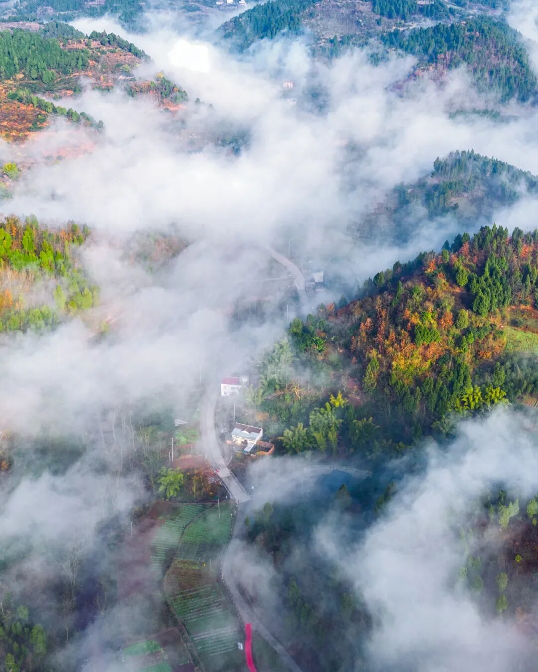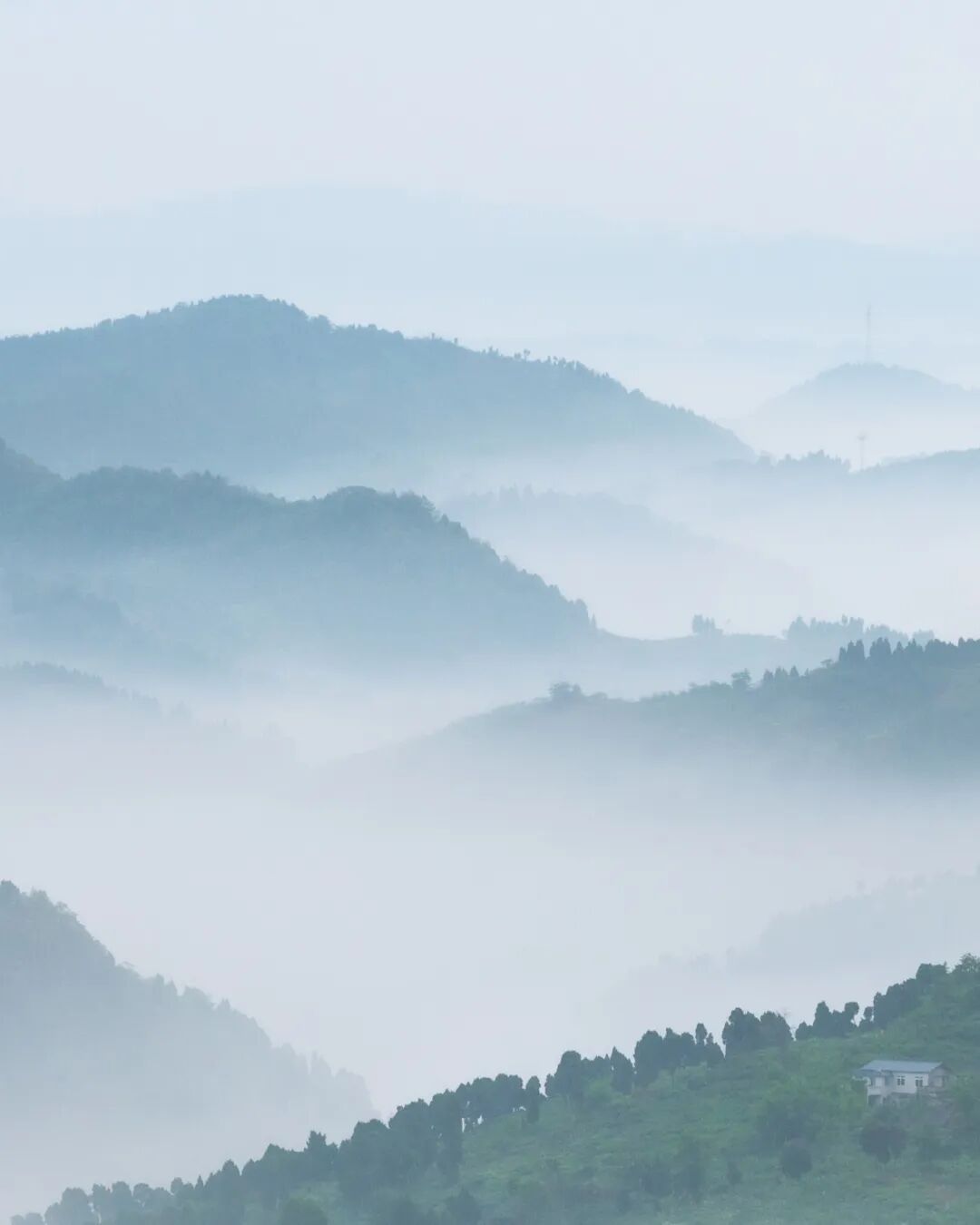 有时仅仅一个转角,周围的景物生态便截然不同,仿佛穿越进了古画中的名山大川,只在偶然看到人工修建的健身步道时,恍然察觉身处何方。