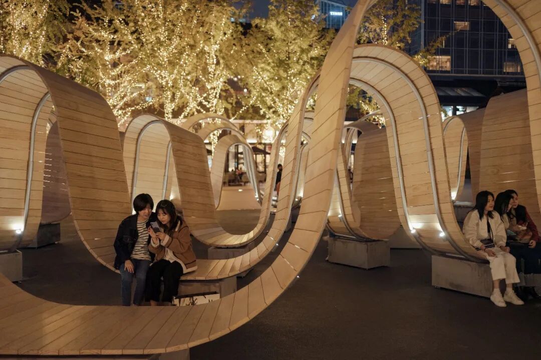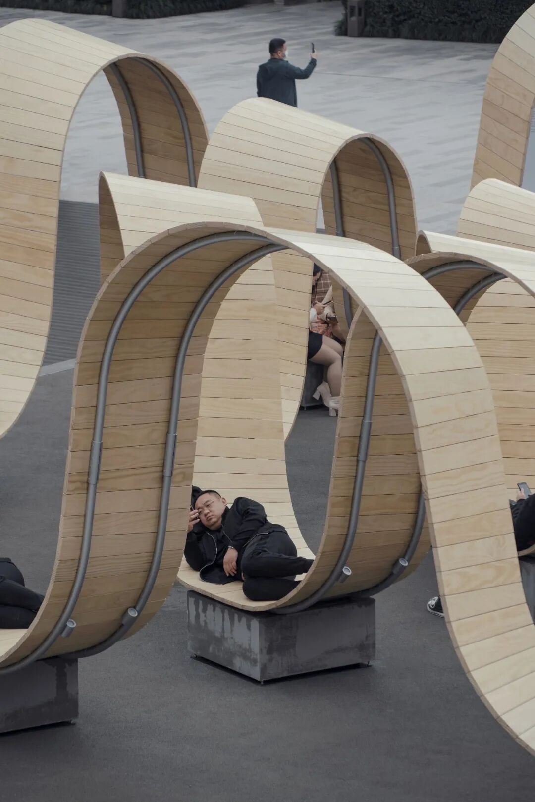 依托极具呼吸感和韵律感的造型设计,Please Be Seated拥有良好的功能性和美观性,能够为行人提供舒适的休憩场所,而不是仅限于观察的装置艺术,也不是阻碍通行的障碍物。