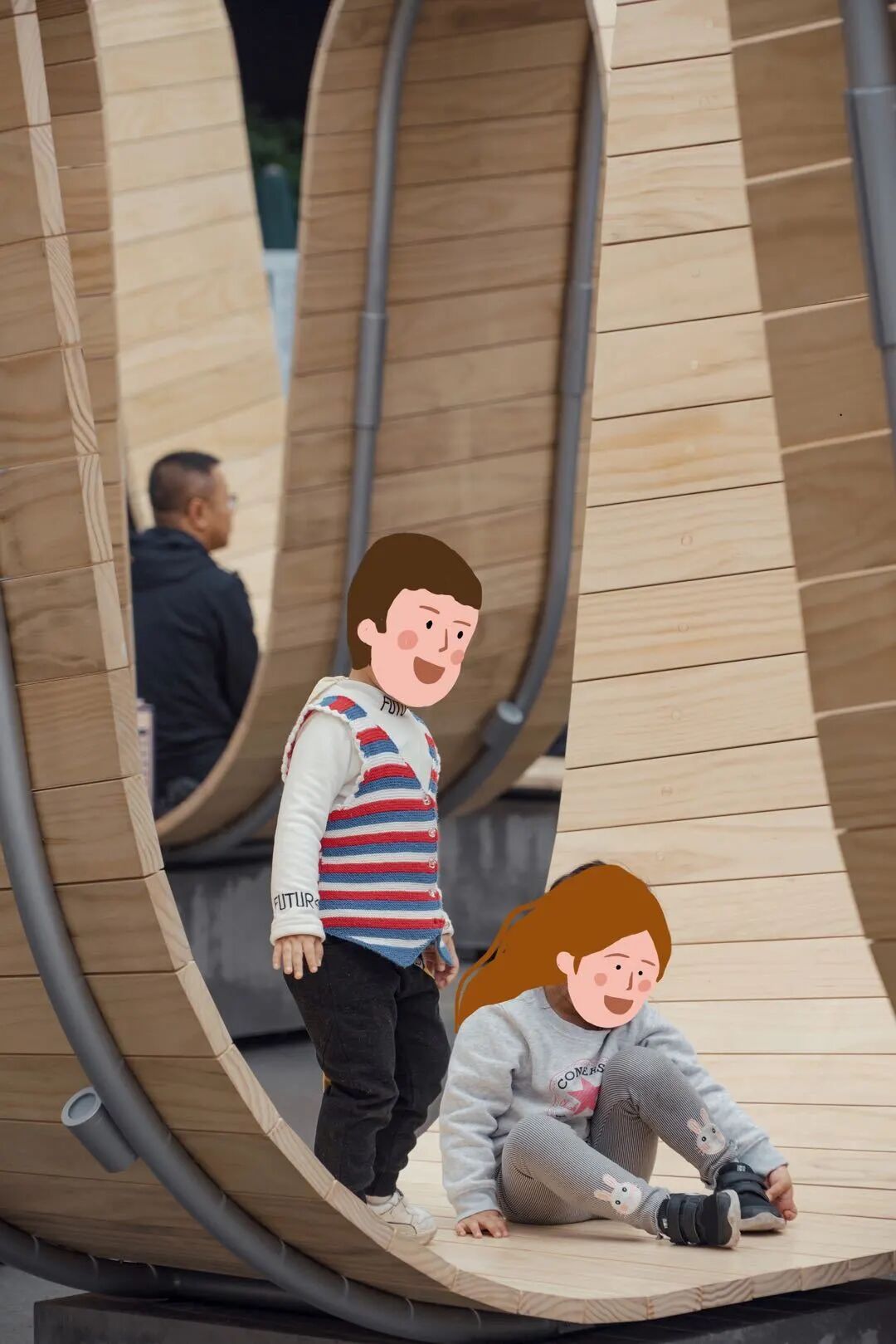 对成年人来说,这座巨大的波纹型装置更像这座城市的“公共客厅”,他们在这里或坐或躺,休息、交流、拍照打卡;对孩子们来说,它可以是“蹦蹦跳跳的小兔子”,可以是任意玩耍的“滑滑梯”,也可以是一座拥有无限魔力的“游乐场”。每个小朋友对它的定义都不一样,而它给孩子们带来的快乐,远比我们看得到的更多。