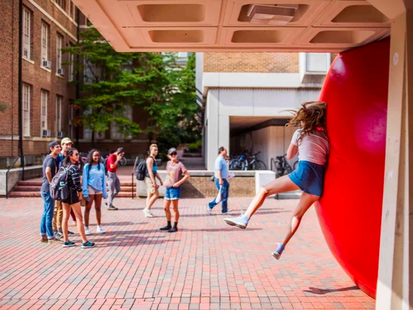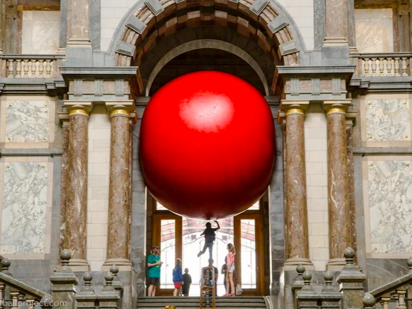 · 左右滑动查看更多图片。由美国艺术家 Kurt Perschke 所发起的公共艺术计划《RedBall Project》,以橡胶为素材制作出直径约 4.5 公尺的巨型红球,已游历过全球数十个城市。这种打破一般公共艺术框架的项目,在固定、静止、永久性等物理性中,相当具有趣味、互动性,给予既定认知的生活空间带来新的活力。图源redballproject.com