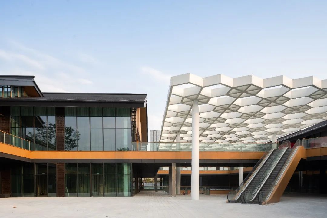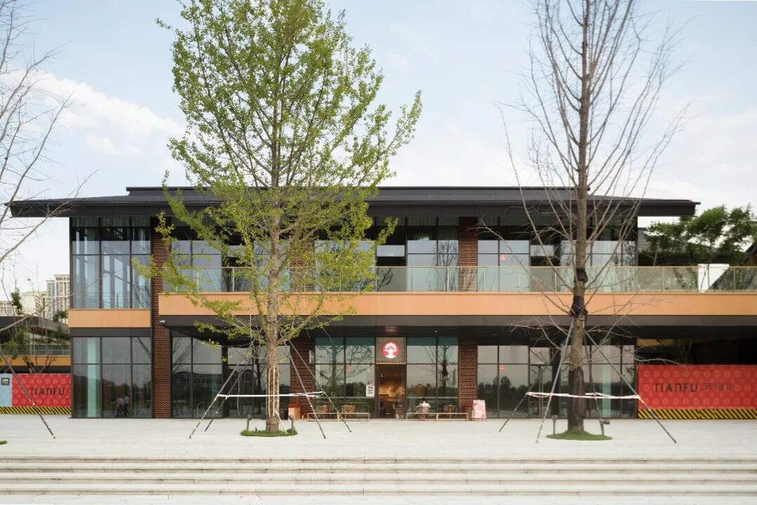 走进天府111的开放街区,漫步于22座平均层高达6米的独栋建筑围合出的街道、天桥、连廊、广场与庭院,约8万平方米的商业面积给艺术氛围浓郁的天府艺术公园带来了显而易见的市井人文烟火气息。