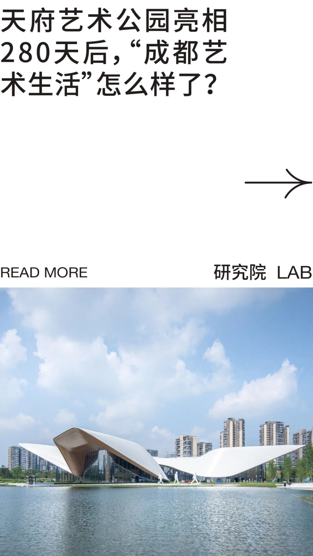 天府111身处天府艺术公园之中,这里坐拥成都市天府美术馆、成都市当代艺术馆和天府人文艺术图书馆三大城市人文新地标,又有迎桂湖的生态场景相伴,更有刚刚落幕的成都双年展,可以说天府111生来就有着非常明显的艺术气质。