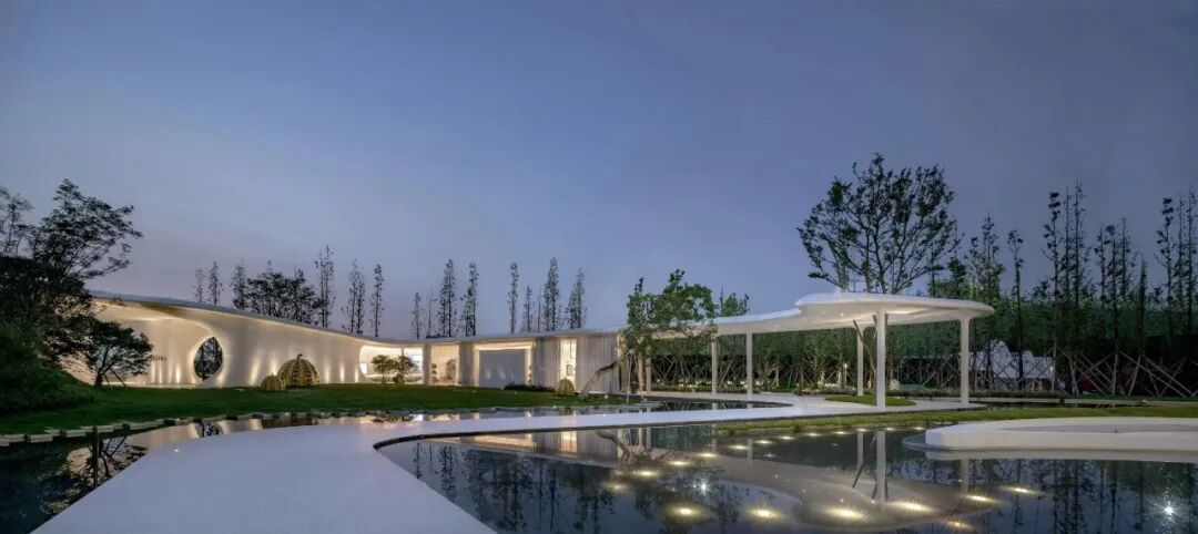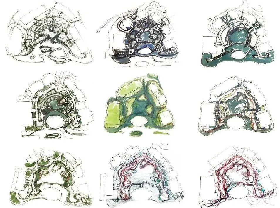 以中心建筑向外扩散,形成三条环抱式的功能动线:亲水的休息互动体验;依水而行、引水入户的回家动线;以及结合风雨连廊与架空层形成富有变化的家庭互动体验动线。