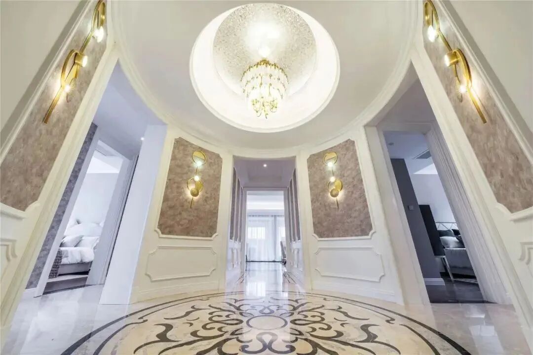 这种圆形玄关最早是从北美著名的富人区纽约上东区流传出来的,也被称为“女王玄关”,在住所里不仅要扮演动线分布的角色,还具有极强的归家仪式感。