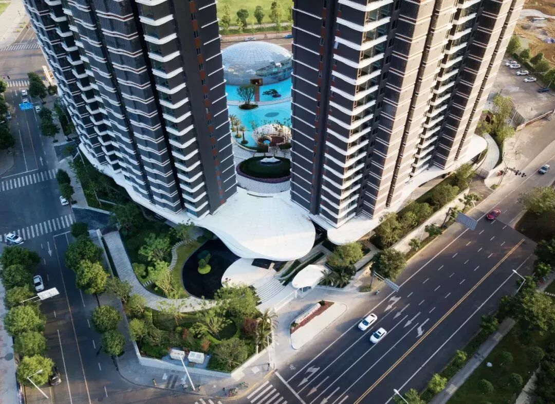 迎晖天玺的“环抱式”格局则体现了对自然环境接纳和包容的态度,居住空间和公共空间的界限被打破,不再相互隔离,而是融为一体。