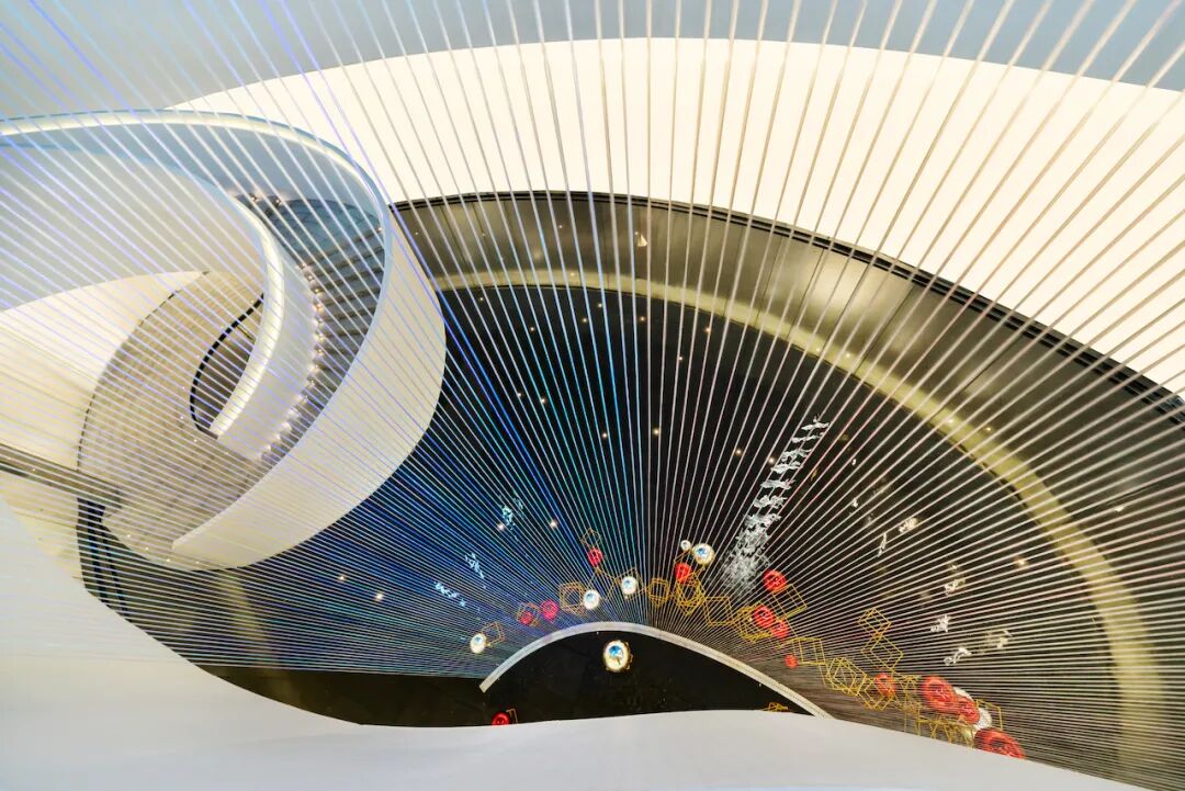 通透的落地玻璃在设计中被广泛使用,不仅通过层间的弧线造型让整体显得更为优雅,也让室内的景观视野达到最大化。
