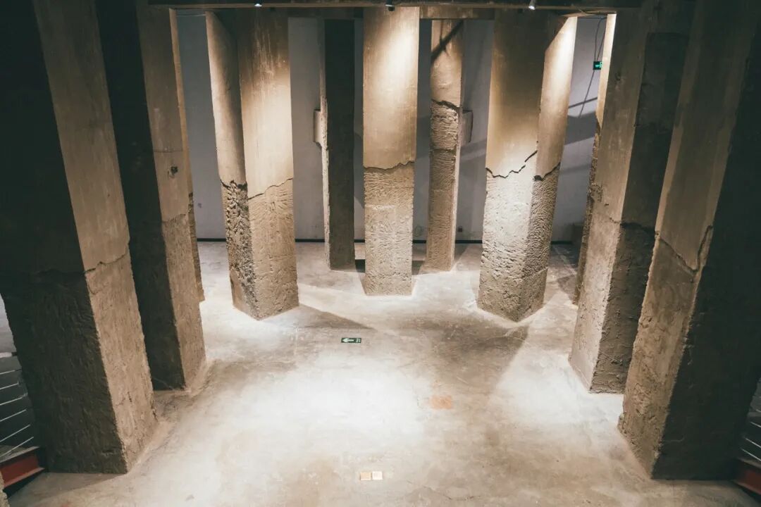 · 图为成都繁星戏剧村·炉剧场内部支撑柱(上)炉窑(左下)拱廊(右下)。图片来自繁星戏剧村