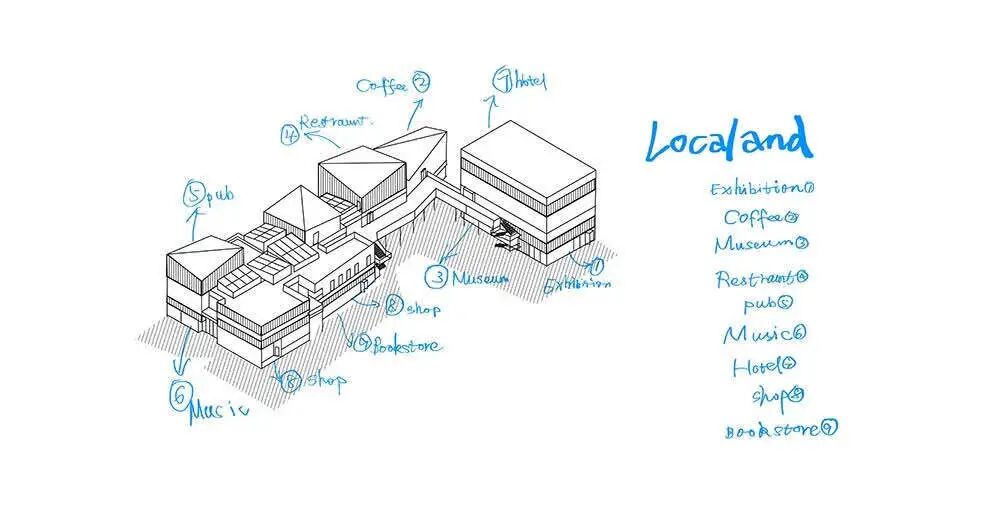 功能上,Localand包罗万象,涉足了文化与生活方式的诸多领域,形成博物馆、书店、美食实验室、文创工坊、咖啡、音乐空间和设计酒店交织复合的模式,构建了全新的在地文化体验。