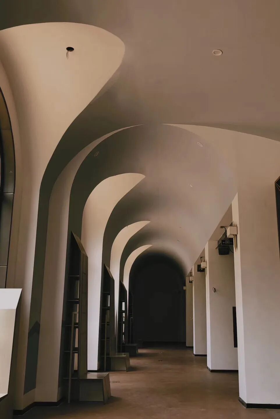 主剧场“炉剧场“改造自原成都红光电子管厂显像管生产线炉窑。门口五个拱门的设计,与东郊南门拱门形成呼应。一楼二楼空间承担了展览、阅读、文创、T台秀、工作坊等“戏外功能”,三楼剧场分为两层,形态可塑性强,适应不同演出的需求。