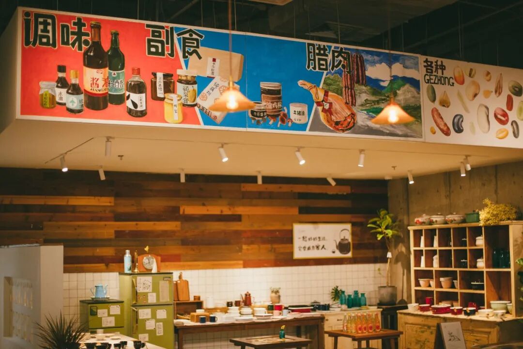 旧物仓的内部空间分为5个部分:Goodone旧物仓(把近百年历史的旧物做场景化陈列)、中古厨房(共享厨房+风物食材店)、生活美学院(课程、讲座)、时光花园(茶饮)和复古市集。