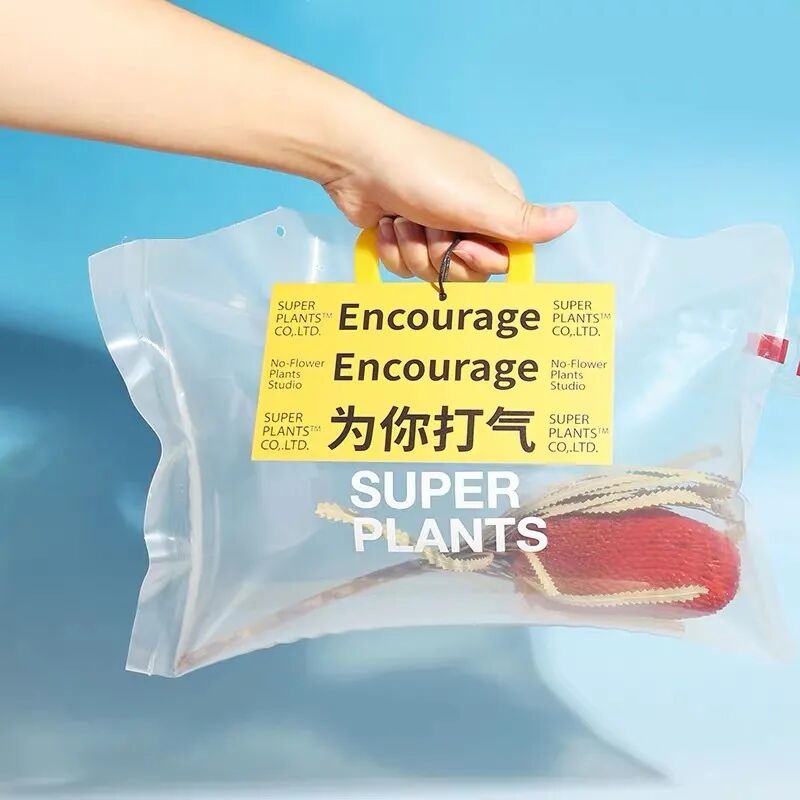 隐藏在超级植物公司背后的是设计工作室大田作物。两位创始人李习斌和姚冶最初被一家咖啡馆里郁郁葱葱的植物所打动。传统的花店对他们来说过于雷同,用同样的花、同样的字体、写同样的祝福,不够酷,于是有了超级植物。