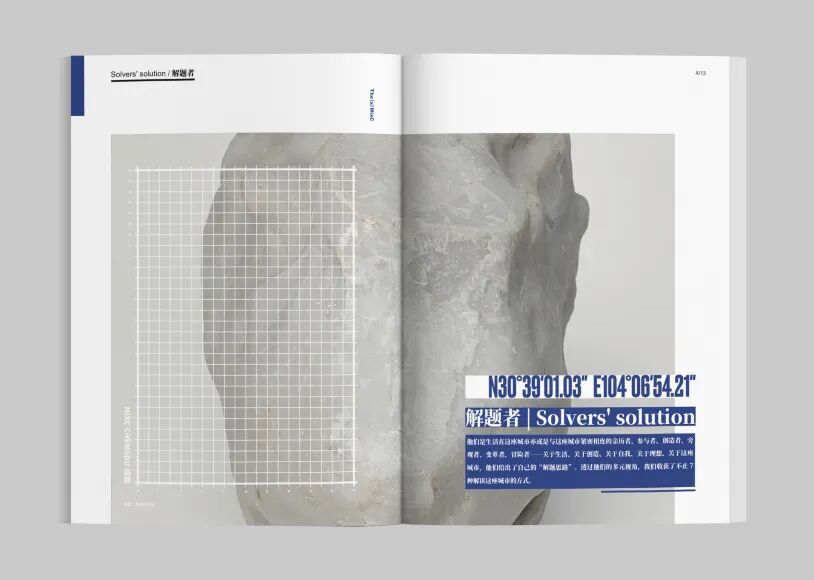 所以我们以“解”这个动作,贯穿了整本书的内容策划和视觉设计——书中穿插着GPS坐标、数学方程式、几何图像、程序代码、网格等视觉“线索”,并在四大章节中,呈现了四种不同的解题思路来“打开”城市。
