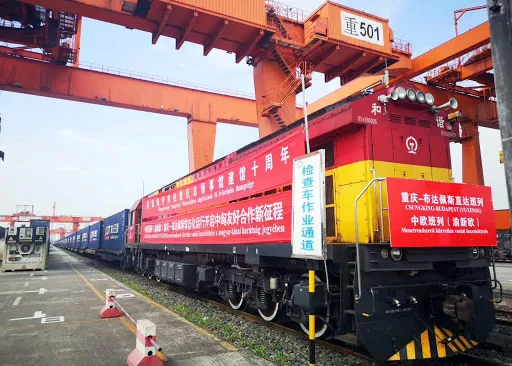 同年,中国第一条中欧班列线路首发成功。火车从沙坪坝团结村出发,经新疆阿拉山口进入哈萨克斯坦,再转俄罗斯、白俄罗斯、波兰,直抵德国杜伊斯堡,全程1.1万公里,用时16天。