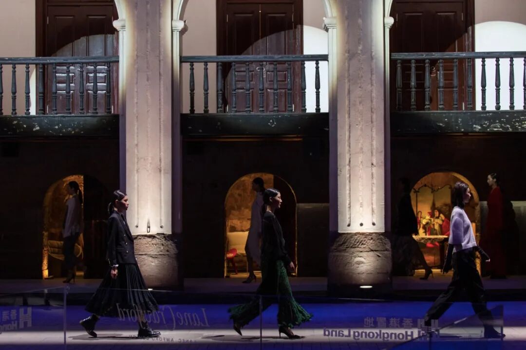 夕阳渐渐西沉,天空中的晚霞从天边弥漫开来,空气中混合江边湿润的泥土气息。承载着百年历史的法国水师兵营里,正在上演着一场“霓裳魅影”的风尚大秀。