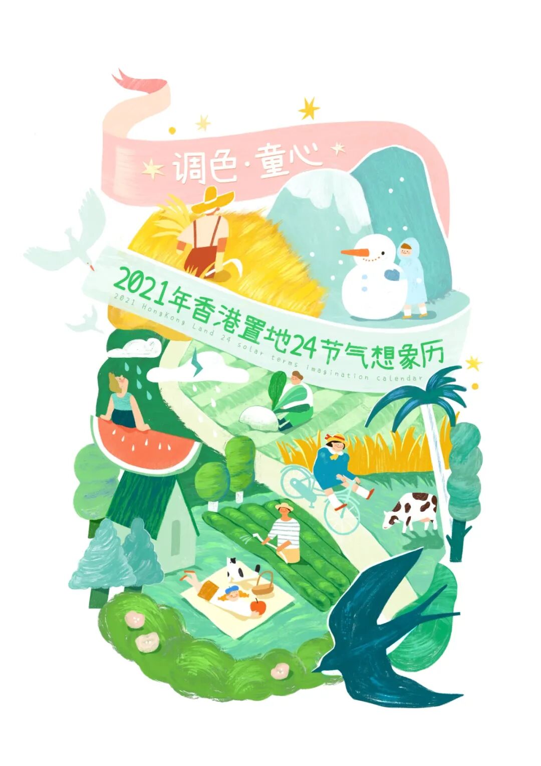· 「2021香港置地24节气想象历」插画师小小梅封面创作过程。