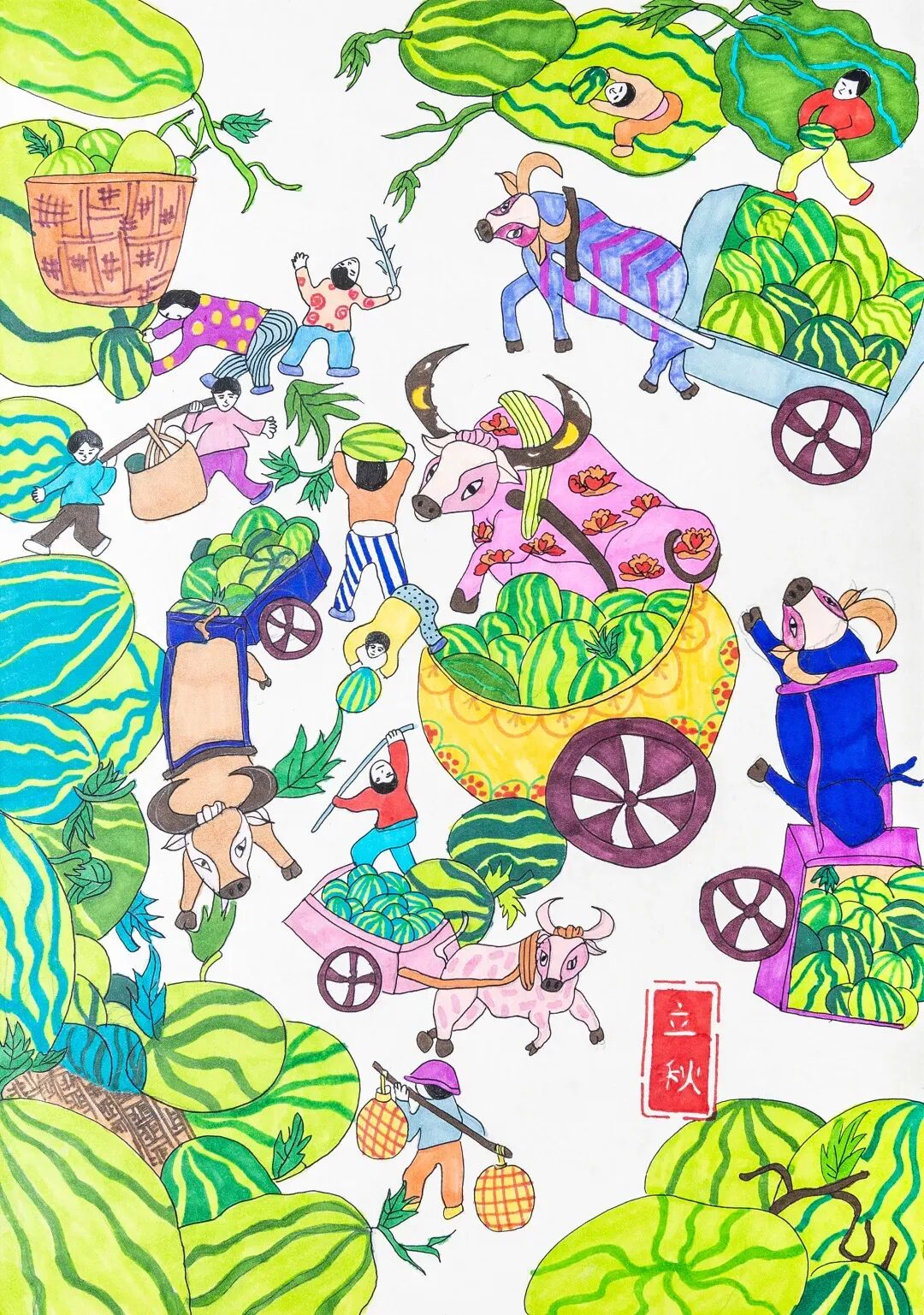 · 左右滑动查看更多 小业主二十四节气画作部分展示
