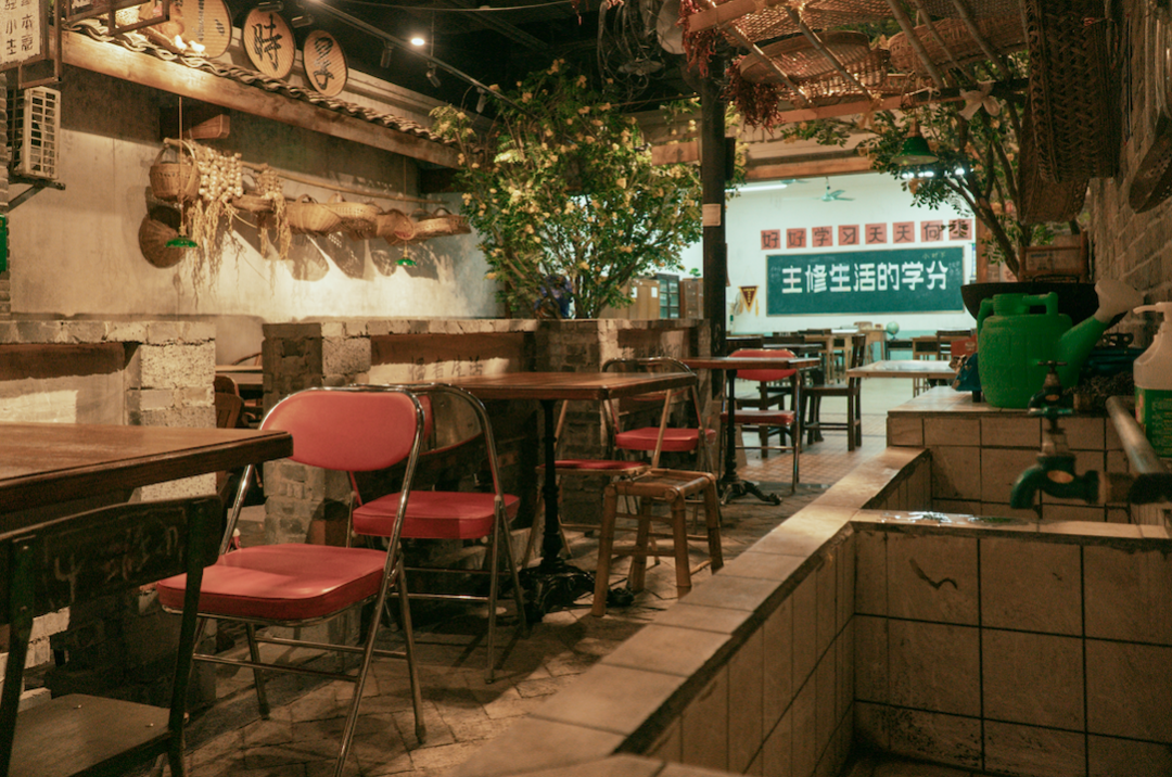 在外,传统川西民居的青瓦白墙与周围的绿化岛、滨水平台、白石小径、台地花海相映成趣;在内,八、九十年代的街道、照相馆、理发厅、学校教室等具有童年回忆的复古场景都能在这里找到,还有简阳羊肉汤、江油肥肠、成都钵钵鸡等特色美食档口。在品尝美味的同时,爸爸妈妈们还可以和孩子分享自己儿时的那些故事。