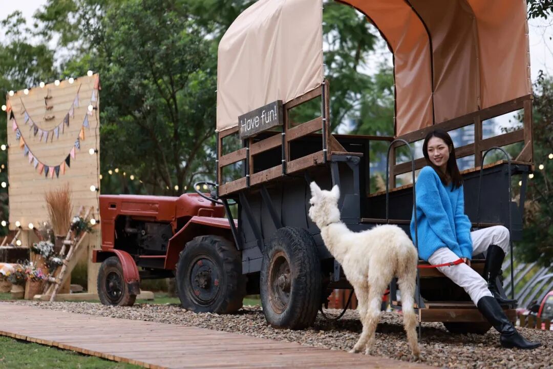 在短短20余分钟的“出场时间”里,最吸引眼球的无疑是麓客岛的“小岛动物农场”。经典的美式农场风格本就够特别的,更何况这里还有一众“网红动物”羊驼。