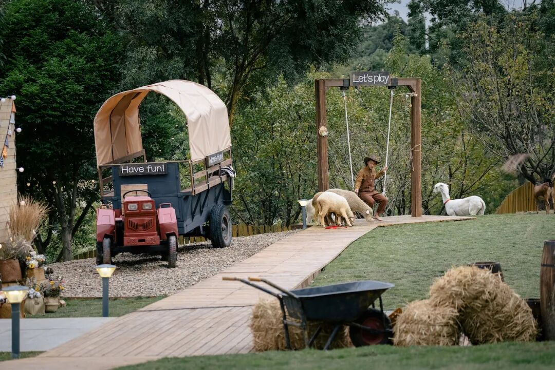 激发麓客岛团队打造这样一个美式动物农场的契机,源于一次团建活动。团队成员们偶然间在泰国发现了一个小众农场,在这里,自然装饰物和农场里的生产场景、劳作场景的布景都极为生动有趣。大家可以按照自己的方式来体验,感受别有风味的农场生活。