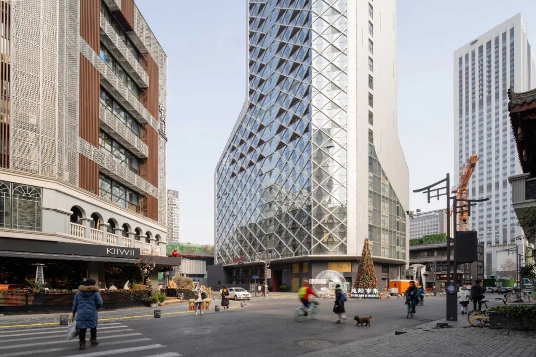 直到“城市更新”的议题出现,老城改造的话题被更多人重视,华兴街这样的百年老街也再次回归到我们的视线中——更新后的乘风大厦,被设计成一条梳理华兴街历史的“记忆脉络”,更直观地让人了解市中心的老街巷的“来路”。整片街区的历史建筑也被保留下来,延续了川西铺面的风格特色。